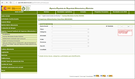 La web de la Agencia Española de Seguridad Alimentaria y Nutrición (AESAN), dispone de un Buscador de empresas registradas, que al teclear la razón social del fabricante nos indicará su Registro y Clave, o la ausencia de este.