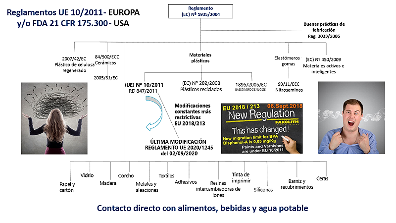 El Reglamento UE 10/2011 sobre materiales plásticos es uno de los pocos sobre los que Europa ha desarrollado un extenso reglamento específico y que ya se toma como la referencia para el resto. Actualmente engloba a diversos materiales plásticos; envases, packaging, sus componentes y complementos, barnices, pinturas, recubrimientos, utensilios, partes de máquinas y equipos, etc...