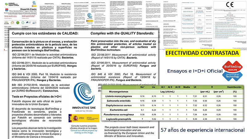 Un ejemplo claro, es que gracias al Proyecto Oficial de I+D+i FDA & EU FoodGrade Coatings, FAKOLITH ha sido el primer fabricante a nivel global en certificar barnices y pinturas aptas para contacto con alimentos, con tecnología antimicrobiana, que cumplen simultáneamente con las 2 regulaciones de referencia internacional de contacto con alimentos, la Americana FDA 21 CFR 175.300 y además la europea EU 10/2011.